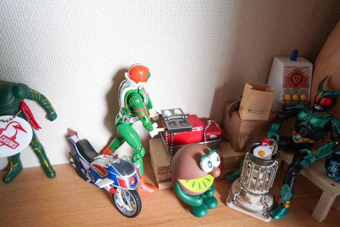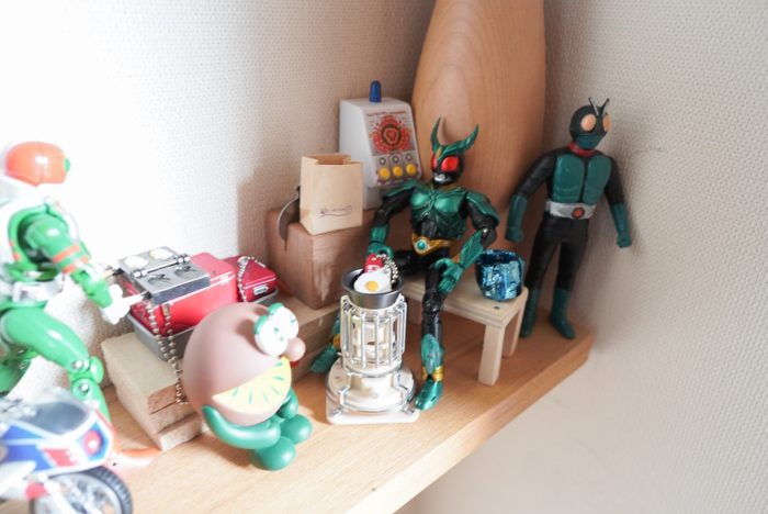 旦那さんががちゃがちゃのミニチュアキャンプ用品など このライダーたちに合うようなサイズのものがあると勝手にガチャしてコレクションしだしており いつのまにか玄関のスペースが 全く私の求めるテイストからかけ離れて行っている…