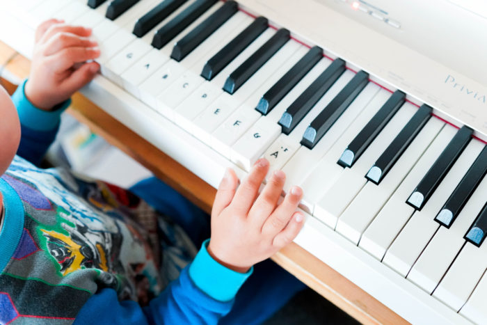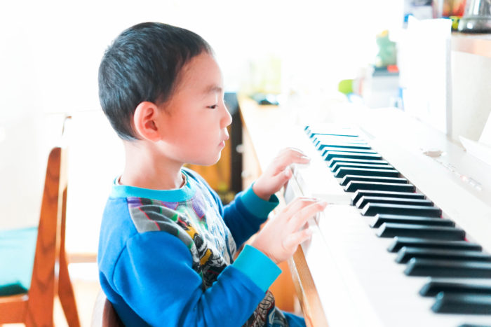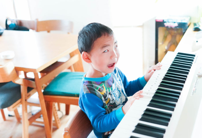 ピアノに興味津々の末っ子君。