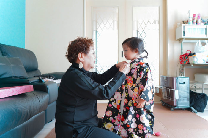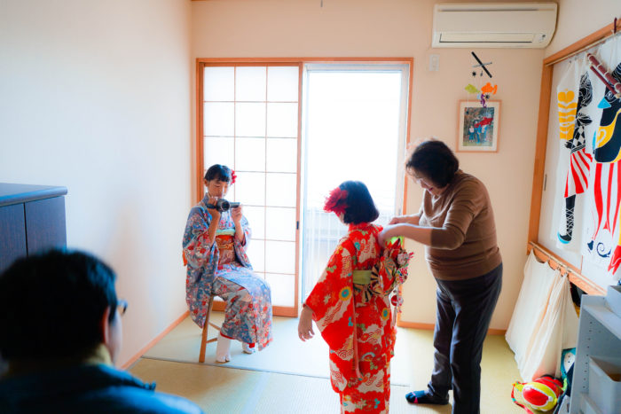 着物を着せいている準備をしているときとかのほうが、私は撮影するのが好きです おばちゃんがいつものかんじでテキパキ着せていきます