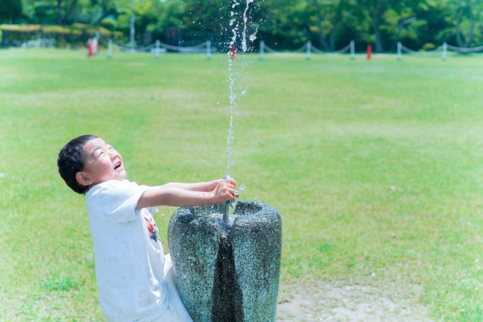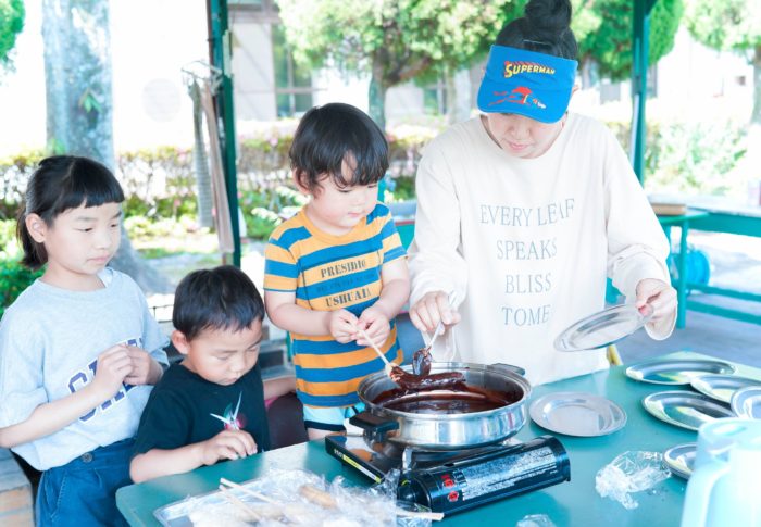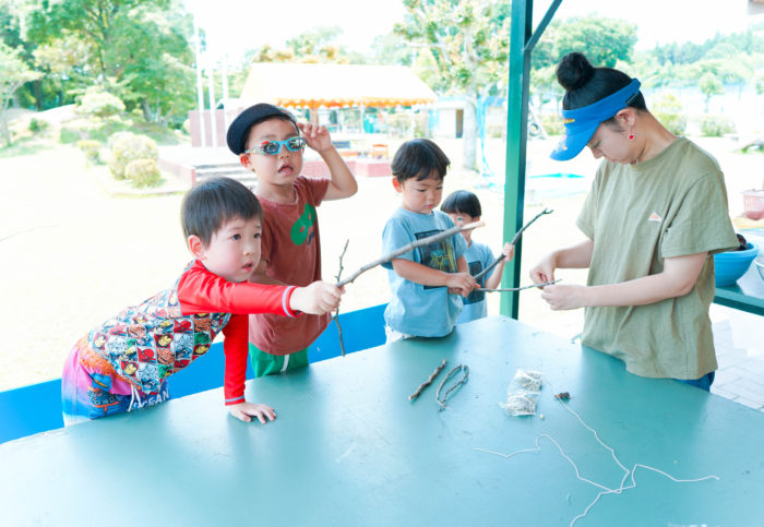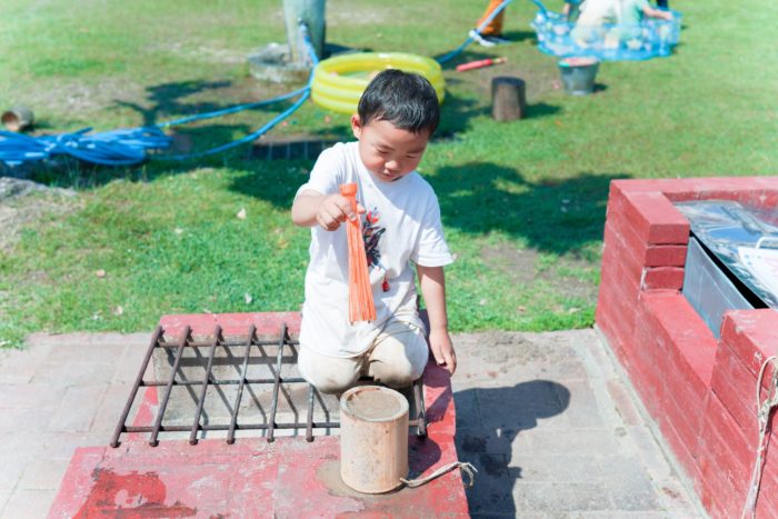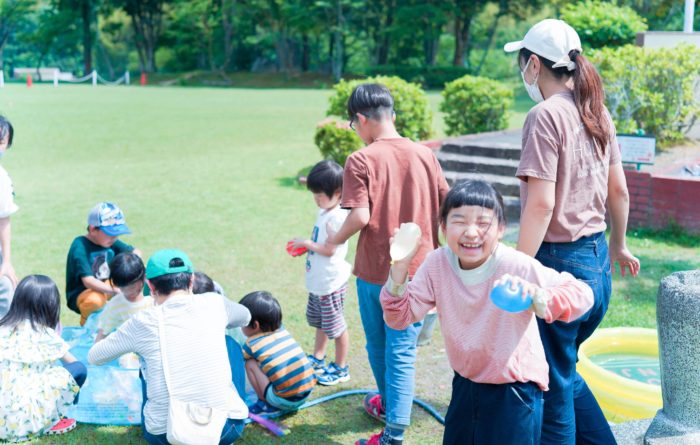 この日は、水浸しのドロドロ予定でしたので、末っ子も水風船作り終わったパーツで、泥茶をたてて下さっております