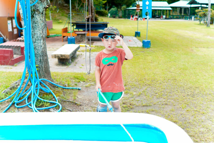 さて、昨日はこれまたあやこさんの活動に参加、プールを昼からして、午前中はザリガニ釣りをするとのことでプールの準備。末っ子の履いているズボンは私の兄が幼稚園だった時の物らしく行く前に実家で着替えさせられていた